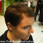 Yoshiko covered up the roots and gave her many strong highlights for a sharp stylish look.